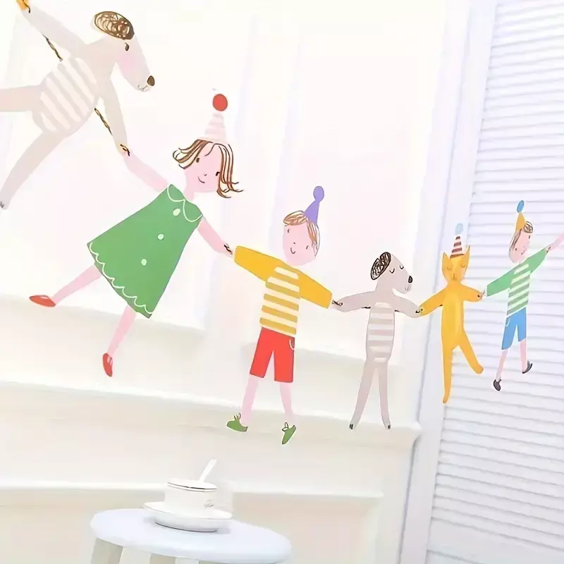 Esta guirnalda encantadora combina niños y animalitos con gorritos de cumpleaños, llenos de color y alegría. Ideal para decorar cumpleaños, habitaciones infantiles o celebraciones con un toque lúdico y tierno.